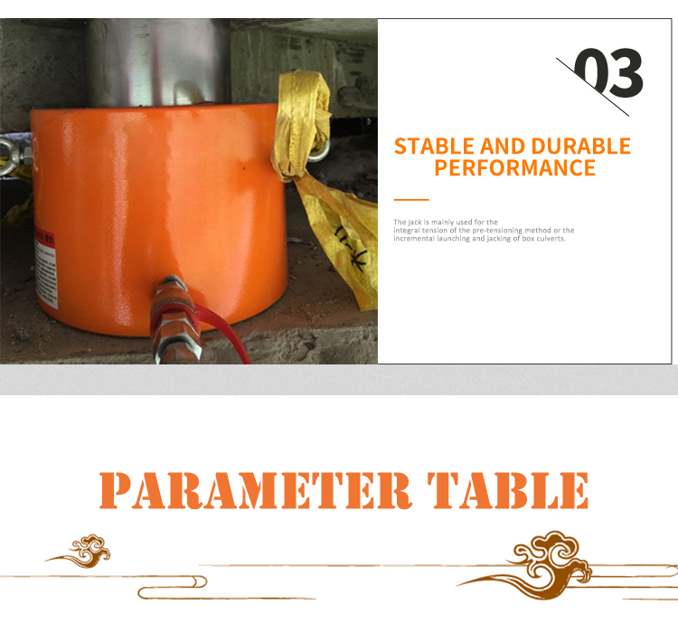 The jack is mainly used for the integral tension of the pre-tensioning method or the incremental launching and jacking of box culverts.